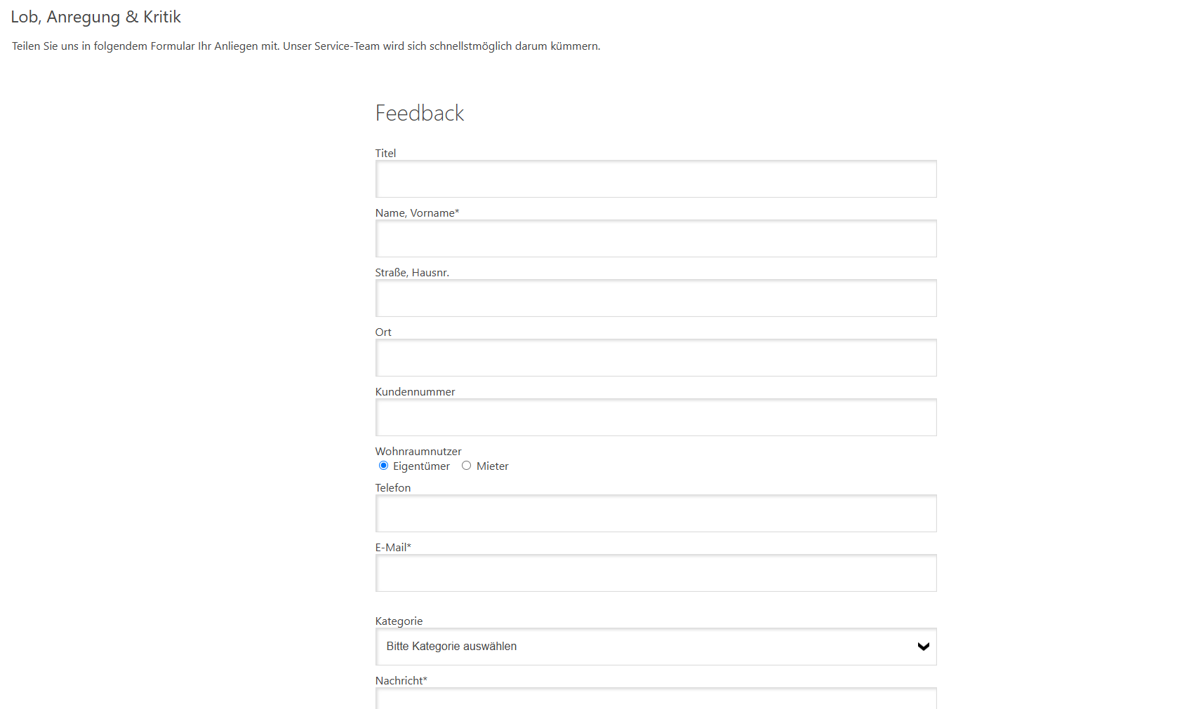 Dank der Pflichtfelder Name, E-Mail-Adresse, Kategorie und Nachricht und einer möglichen Bestätigung durch den Bürger, dass er selbst dieses Anliegen verfasst hat schützen wir vor Missbrauch und machen die Weiterverarbeitung leicht.