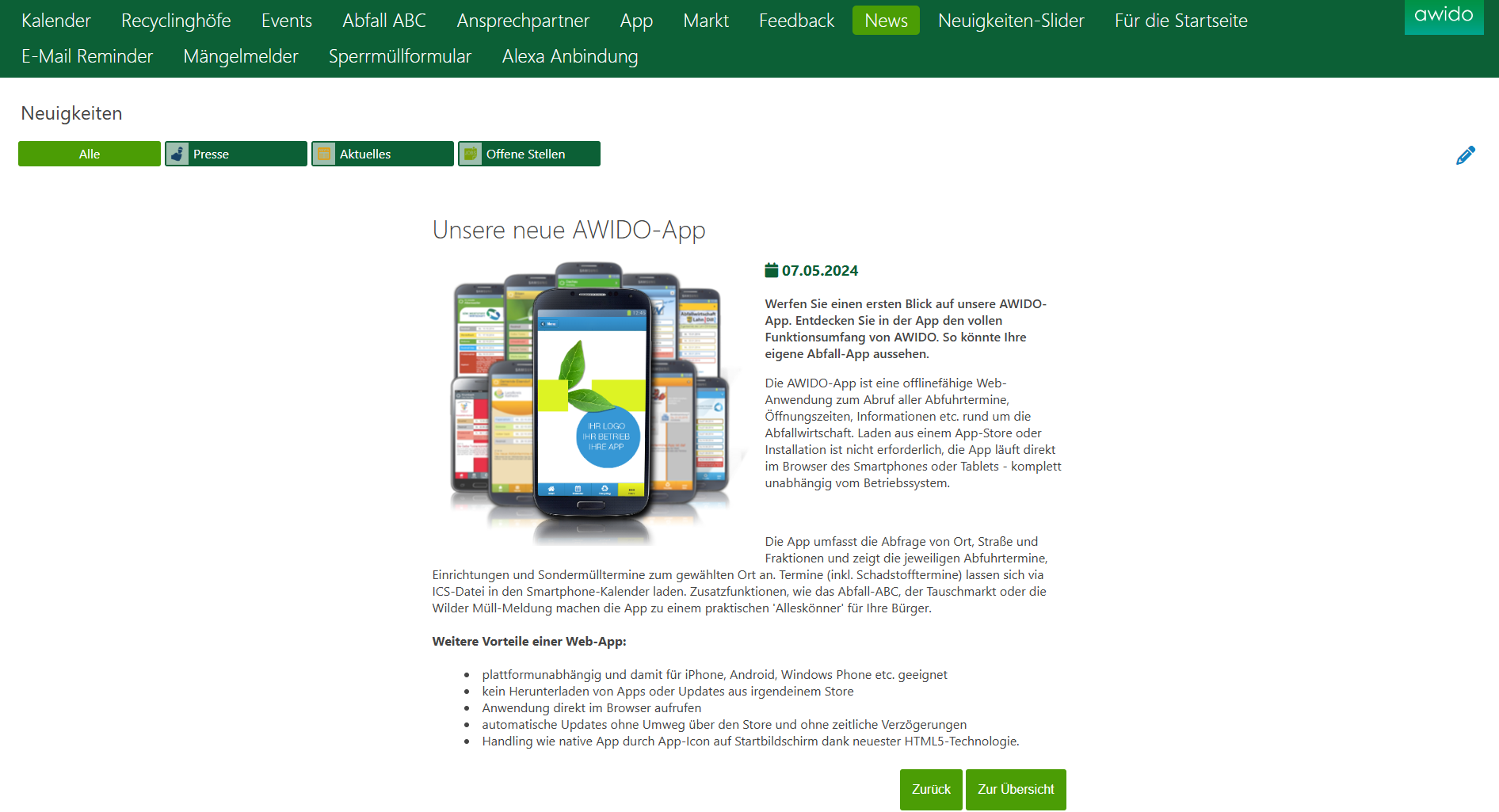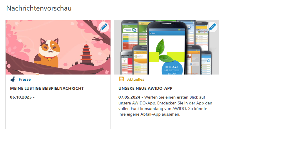 Die Nachrichten können mittlerweile nicht nur in der AWIDO-App angezeigt werden, sondern auch als intelligentes News-Widget auf Ihrer Website.