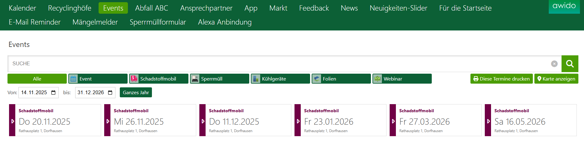 Wo kann ich meinen Problemmüll entsorgen? Wann kommt die Aktenvernichtung? Gibt es heuer einen Tag der offenen Tür?