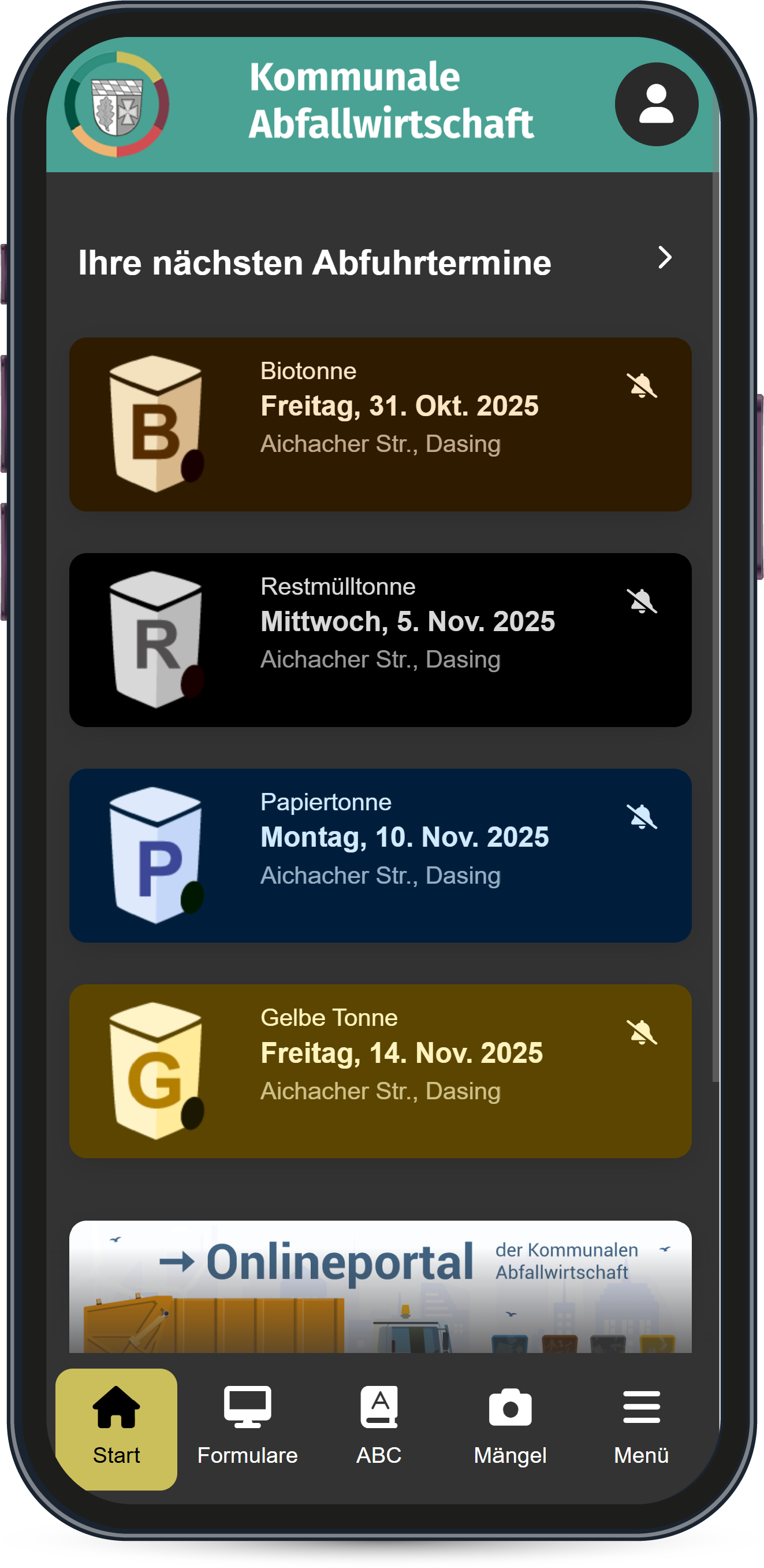 Das Landratsamt Aichach-Friedberg hat 2016 ebenfalls das AWIDO-System eingeführt. Mit der Abfuhrapp und den attraktiven Web-Komponenten, können die Bürger alle Informationen rund um die Abfalentsorgung digital abfragen. "Wann wird welche Tonne geleert", "Wo befindet sich der nächte Werstoffhof und wann hat dieser geöffnet".