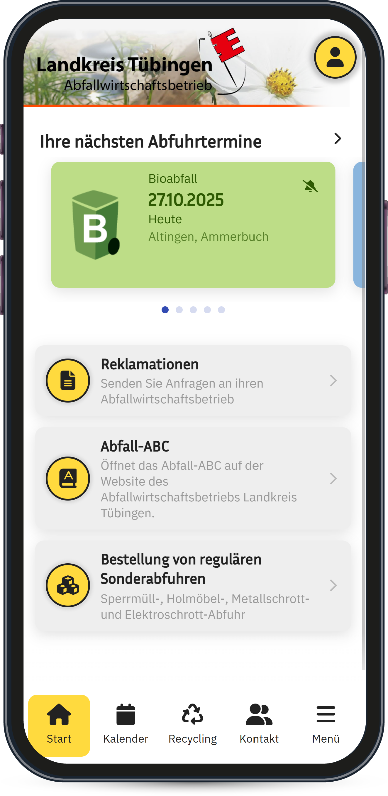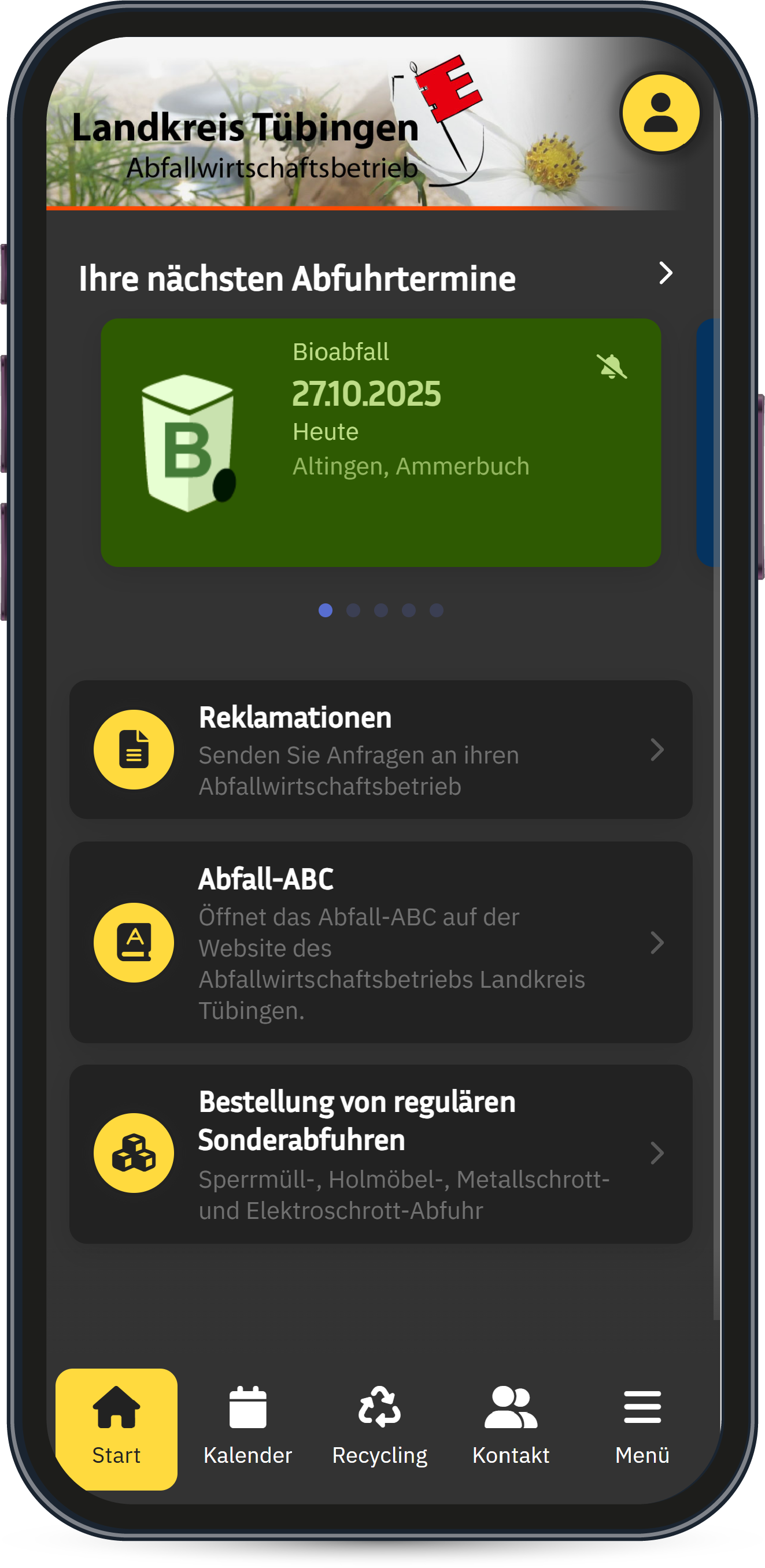 Neben den praktischen Erinnerungsfunktionen, wie z.B. die Push-Notification, beinhaltet die App auch sämtliche Entsorgungseinrichtungen mit Standort und Öffnungszeiten. Und nicht zuletzt werden die Sondermülltermine und das Abfall-ABC in der App angeboten. So können die Bürger des Landkreises Tübingen jederzeit den geeignetsten Entsorgungsweg in Erfahrung bringen.